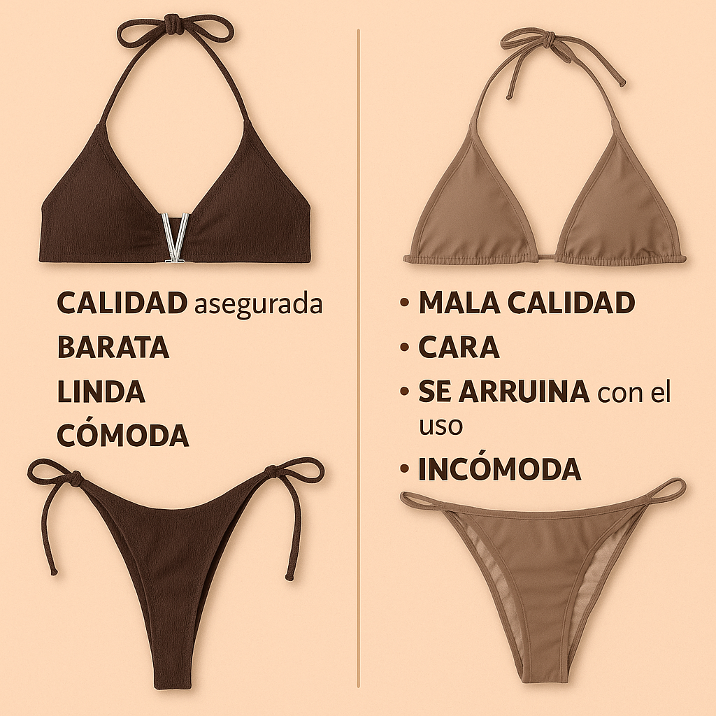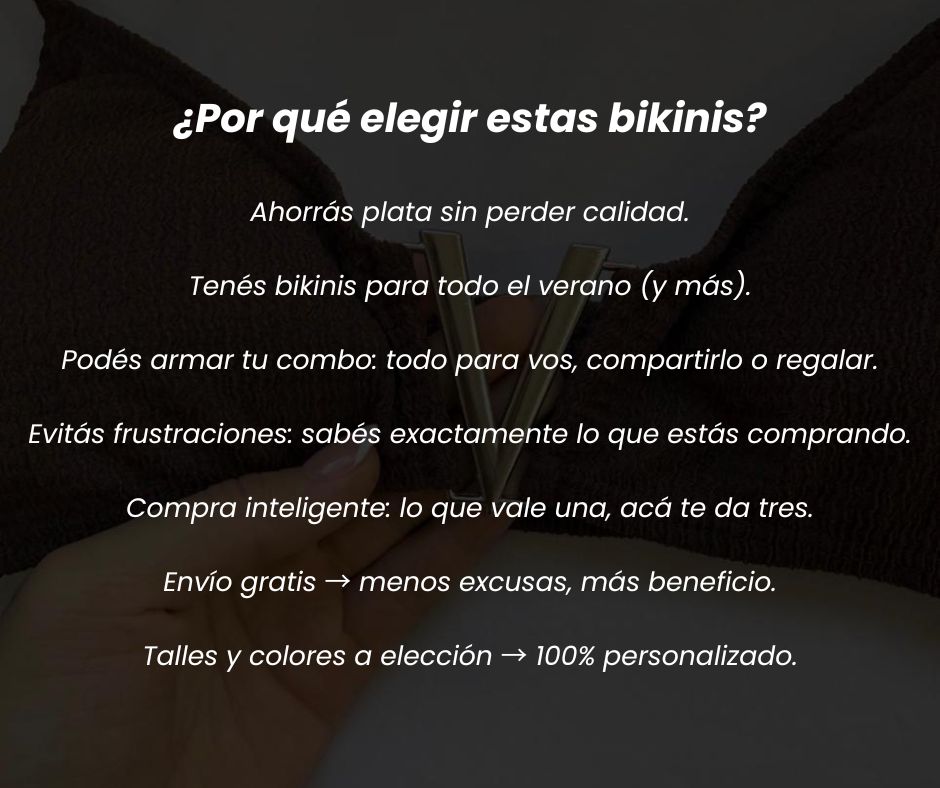 Oferta verdadera: te llevás 3 bikinis al precio de 1 que comprarías en cualquier tienda.